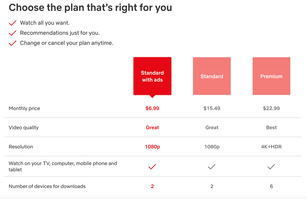 Arbitrage. Il est évident que la hausse permanente des offres premium des streamers va provoquer une surpondération des plans avec publicité. C’est déjà ce qui se passe pour Netflix qui a vu son volume d’abonnés avec publicité augmenter compte tenu de son avantage prix. Un retour à la normalité de la TV pour les abonnés qui ont apprécié l’absence de pub pendant quelques années.