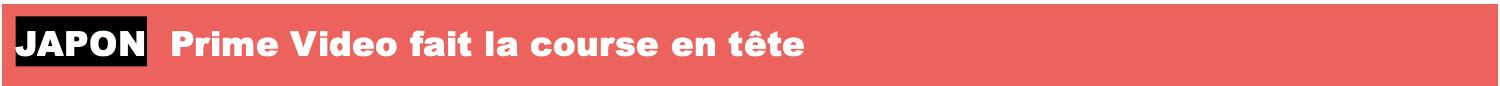 Challenge. Prime Video domine largement le marché japonais de la SVOD avec plus de 10 millions d’abonnements, suivi à distance par Netflix et ses 7 millions d’abonnements. En troisième position, U-NEXT qui vient de fusionner avec un autre service, Paravi et qui atteint, selon les données publiées par Ampere Analysis, 3,9 millions d’abonnements (dont 800.000 abonnements de Paravi). U-NEXT revendique le catalogue le plus important, mais est pénalisé par son prix d’abonnement (2189 yen, soit 13,50 euros), plus cher que ses deux concurrents américains (1490 yen pour Netflix (9,20 euros) et 600 yen pour Prime Video (3,70 euros)).